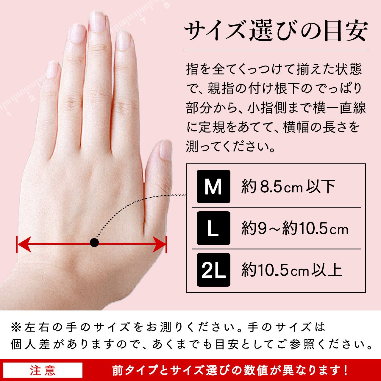※手のサイズは個人差がありますので、あくまでも目安としてご参照ください。